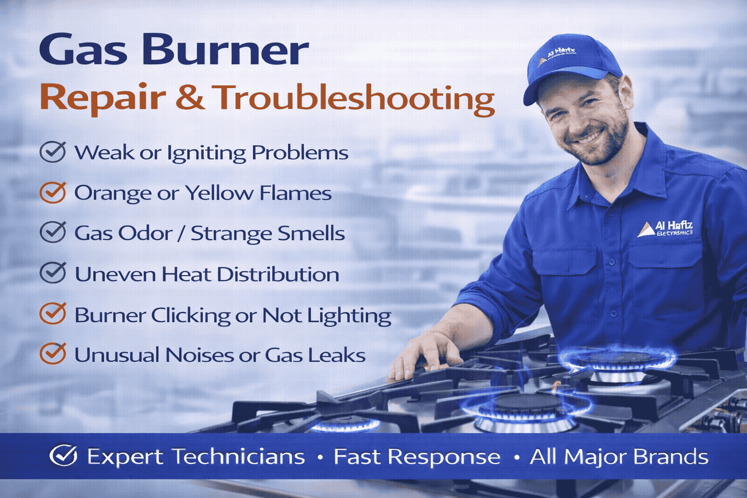 Professional gas burner repair and troubleshooting services for weak flames, ignition issues, and uneven heating. Fast, safe, and reliable fixes for all brands.
